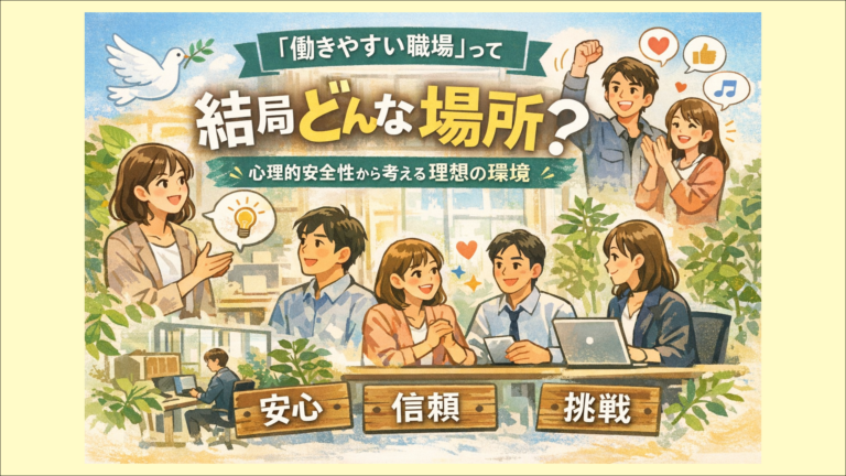 「今の職場、なんだか息苦しいな…」 「上司の目が気になって、仕事に集中できない…」 そんな悩み、ありませんか? 実はそれ、あなたの根性の問題ではなく、「職場の環境」に原因があるかもしれません。 結論から言うと、最高の「働きやすい職場」とは、心理的安全性(しんりてきあんぜんせい)が高い場所のことなんです! 「えっ、難しい言葉が出てきた…」と思った方、大丈夫です。 初心者の方にもわかりやすく、サクッと […]