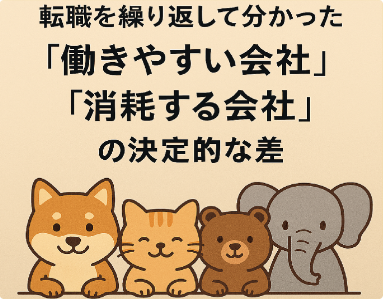 転職を何度か経験すると、「働きやすい会社」と「消耗する会社」の違いが、はっきり見えてきます。制度や福利厚生だけでは測れない、“現場でしかわからない差”が確かに存在します。 働きやすい会社の特徴 ① 業務の範囲が明確で、無理な押し付けがない 本来の職務に集中できる環境は、働きやすさの基本です。「終業後に突然別の作業を命じられる」ようなことがない会社は、社員の時間と尊厳を守っています。 ② 上司や経営 […]
