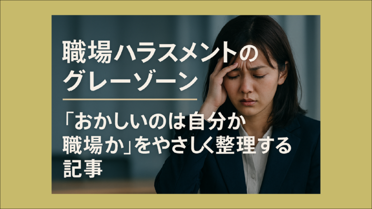 「これってハラスメントなのかな…」そう感じても、はっきりと言葉にできないことがあります。怒られ続けてつらい。上司の機嫌で仕事が変わる。相談しても「気にしすぎ」と言われる。でも、法律的な“パワハラ”とまでは言えない気がする。自分が弱いだけなのかもしれない。そんなふうに、自分を責めてしまう人はとても多いんです。この記事では、「おかしいのは自分か職場か」という迷いを、やさしく整理できるようにまとめました […]