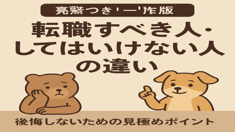 後悔しないための見極めポイント はじめに 「転職したほうがいいのか、今はまだ動かないほうがいいのか」これは多くの人が抱える悩みです。勢いで辞めて後悔する人もいれば、逆に限界まで我慢して心身を壊してしまう人もいます。この記事では、 を、働く人の視点でわかりやすくまとめます。 転職すべき人の特徴 ① 心身の負荷が明らかに限界に近い 朝起きられない、強い不安、涙が出る、休んでも回復しないなど、一般的に「 […]