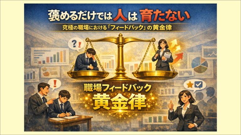 結論:フィードバックがないと、人は「自分は必要とされていない」と感じてしまう 入社して1ヶ月。 「自分って、ちゃんと役に立ってるのかな…」 そんな不安、ありませんか? 結論から言います。 その不安の原因は、あなたの能力や努力が足りないからじゃないです。 「フィードバックがもらえていないから」です。 人間は、自分がやったことに対して何らかの反応がないと、「自分はダメなんだ」と思い込んでしまう生き物で […]